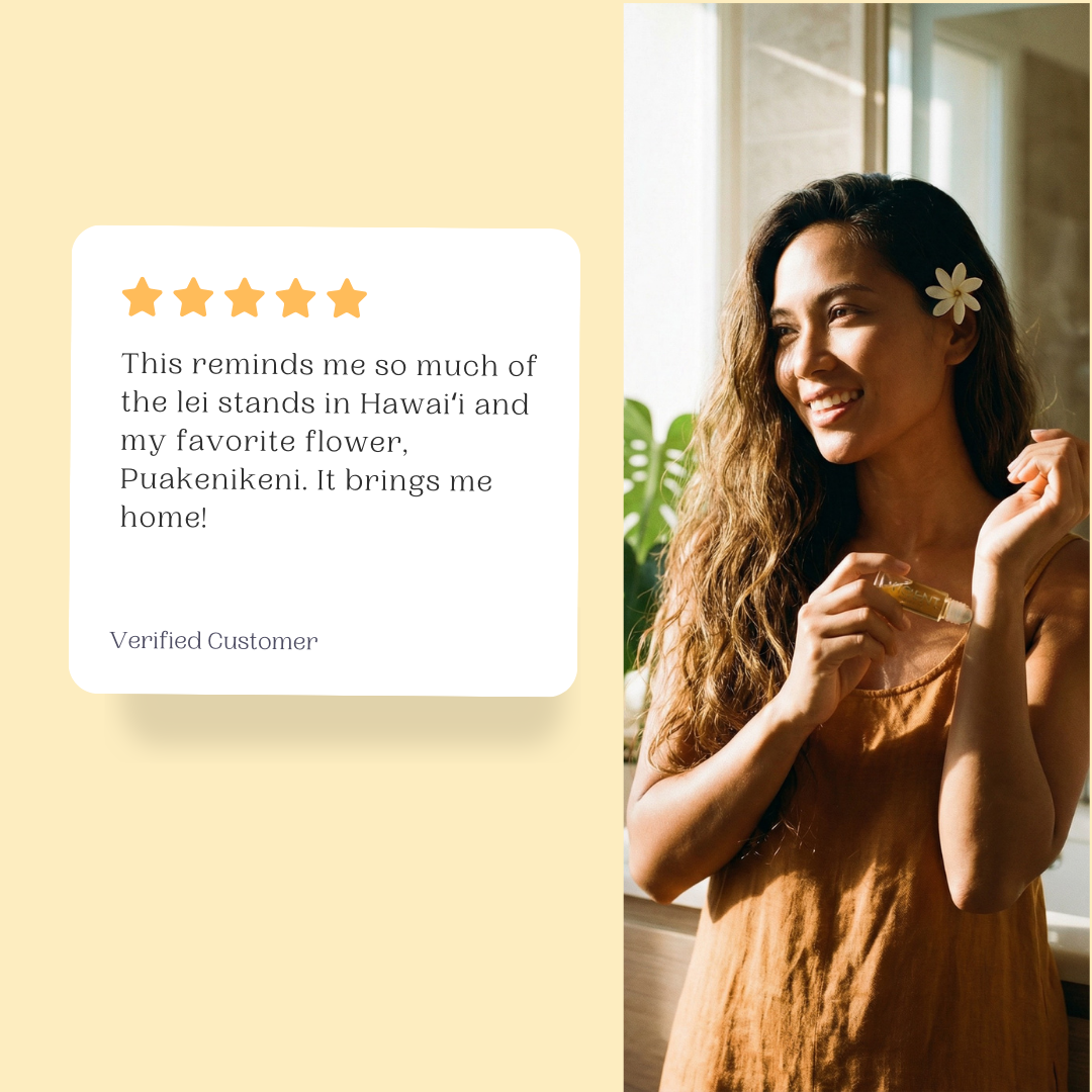 Puakenikeni is a radiant Hawaiian perfume inspired by golden hour blossoms and warm island breezes. This tropical perfume oil highlights the intoxicating beauty of puakenikeni flower, a cherished Hawaiian floral known for its rich, sun-warmed aroma. Soft, luminous, and effortlessly feminine, this scent evokes barefoot evenings, glowing skin, and slow island moments.